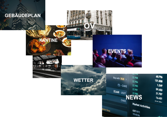 Für allgemeine Informationen nutzen Sie Screens in Lobby, Empfangsbereich und Konferenzräumen wie: